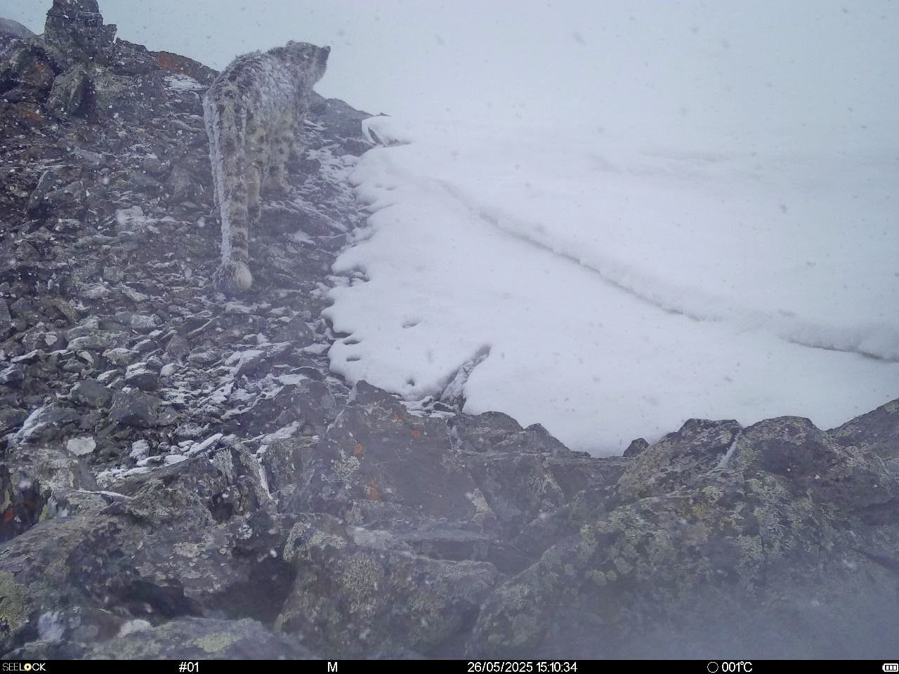 В Алтайском заповеднике в этом году автоматическая камера, установленная на хребте Шапшал, сняла проход нового снежного барса 26 мая 2025 года. «Барс не идентифицирован и вероятно пришёл со стороны Республики Тыва», -говорит Сынару Трифанова, ведущий научный сотрудник Алтайского заповедника.