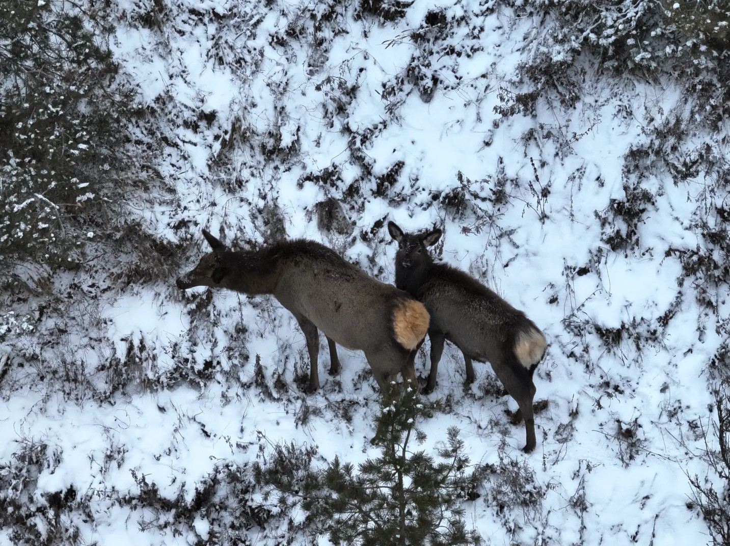 «Маралы концентрируются в окрестностях низкогорных солонцов. Так, около кордона Чири с беспилотника единовременно наблюдали до 8 маралов, самок с телятами. В окрестностях Яйлю, на площадке около 1250 гектар, Роман и Татьяна Воробьёвы в ходе подобного обследования с воздуха 16 декабря обнаружили 15 маралов, 18 косуль и 6 кабанов», — говорит Юрий Калинкин.