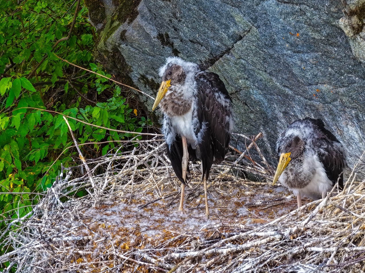 «В этом году у черного аиста в выводке было два птенца. Возможно, повлияла поздняя весна и высокая вода, которая держалась почти до середины лета. Это отразилось на кормовых угодьях черного аиста в местах гнездования», — говорит Олег Митрофанов.