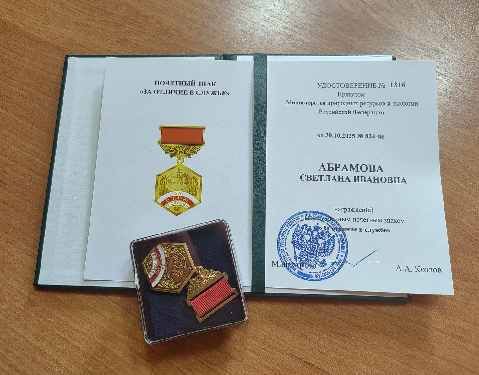 Высокой наградой федерального уровня награждена Светлана Ивановна Абрамова, главный бухгалтер Алтайского заповедника. Нагрудный знак «За отличие в службе» Минприроды России получен за заслуги в труде и продолжительную работу.