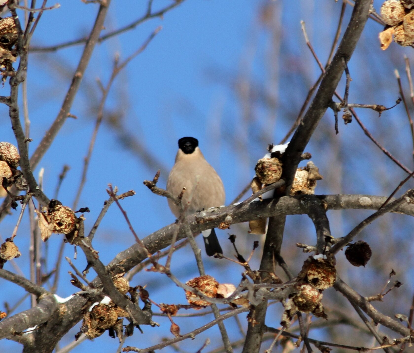 В лесу преобладал большой пестрый дятел Dendrocopos major. Все зиму продержались несколько дроздов, среди них — черный Turdus merula. Снегири Pyrrhula pyrrhula тоже стали прилетать к месту подкормки синиц. Таким был последний месяц зимы.
