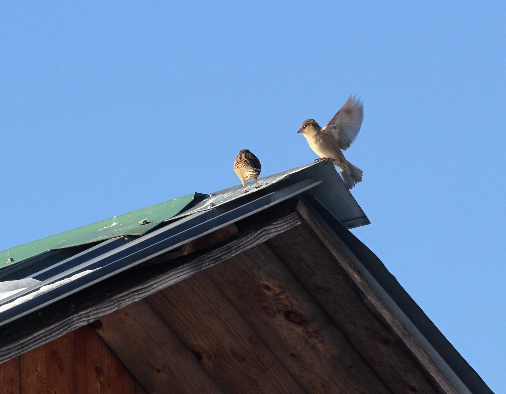 Ей немного уступают домовые воробьи Passer domesticus, которые уже готовятся к гнездовому периоду,